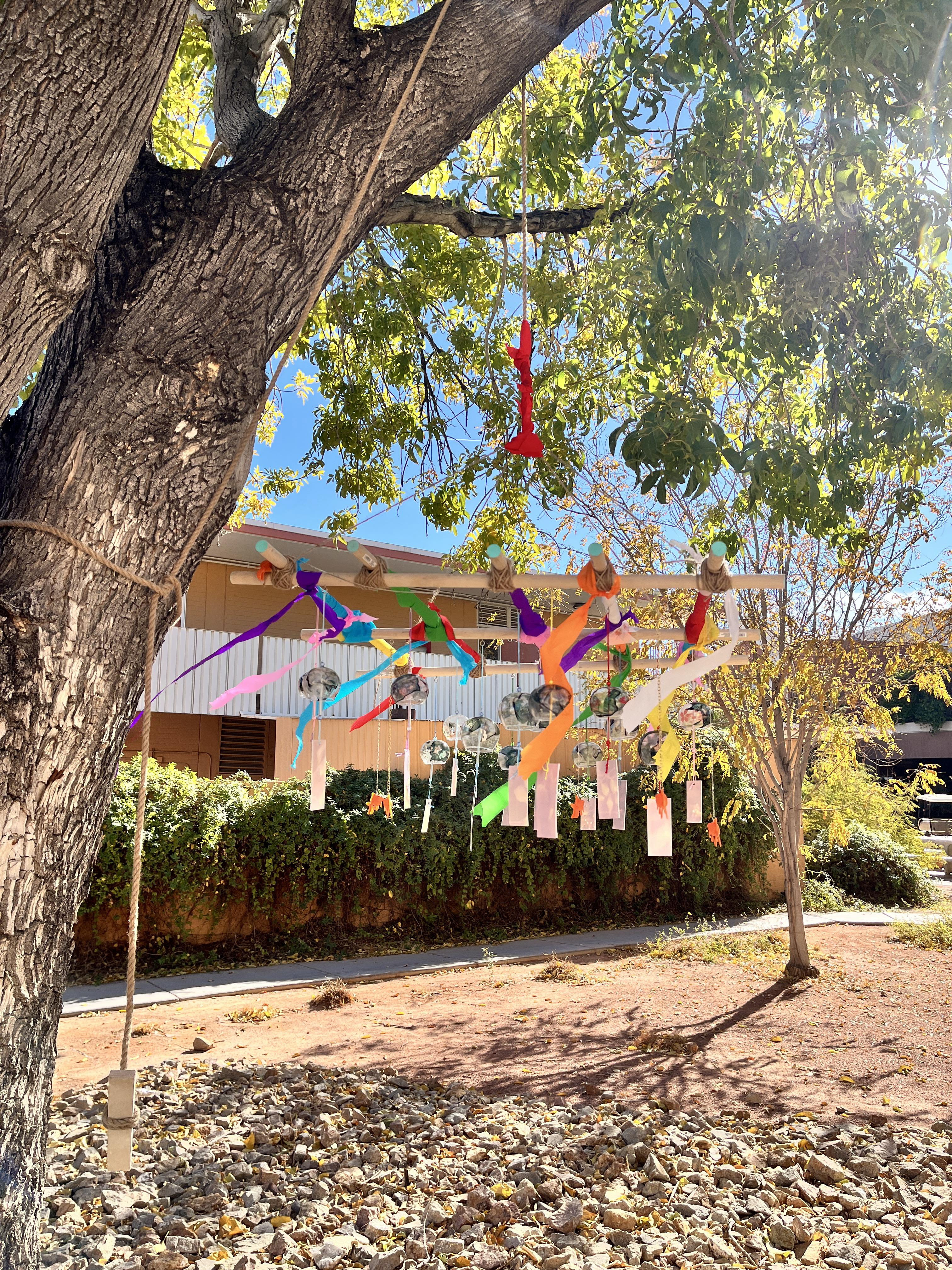 Wood, glass, gelatin silver prints, plastic, streamers, rope